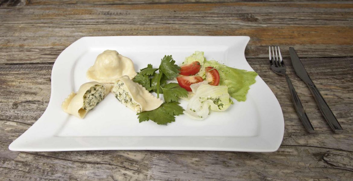 Die vorgekochten Nudeln ca. 3 Minuten in heißem Wasser erwärmen, abtropfen lassen, in zerlassener Butter schwenken und mit Schnittlauch bestreuen.