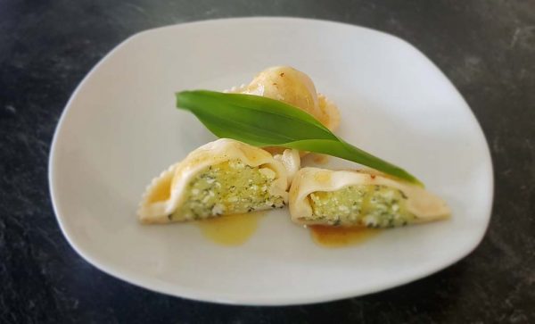 Füllung: Brösseltopfen, Kartoffeln, Bärlauch, Salz Teig: Mehl, Eier, Wasser, Pflanzenöl, Salz
