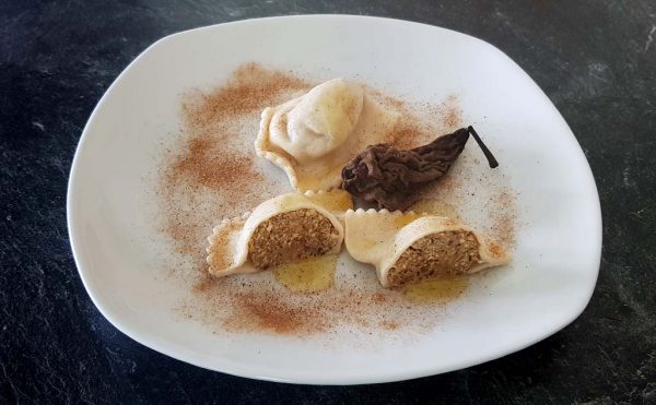 Zutaten: Füllung: gedörrte Birnen, Bröseltopfen, Zucker Teig: Mehl, Eier, Wasser, Pflanzenöl, Salz
